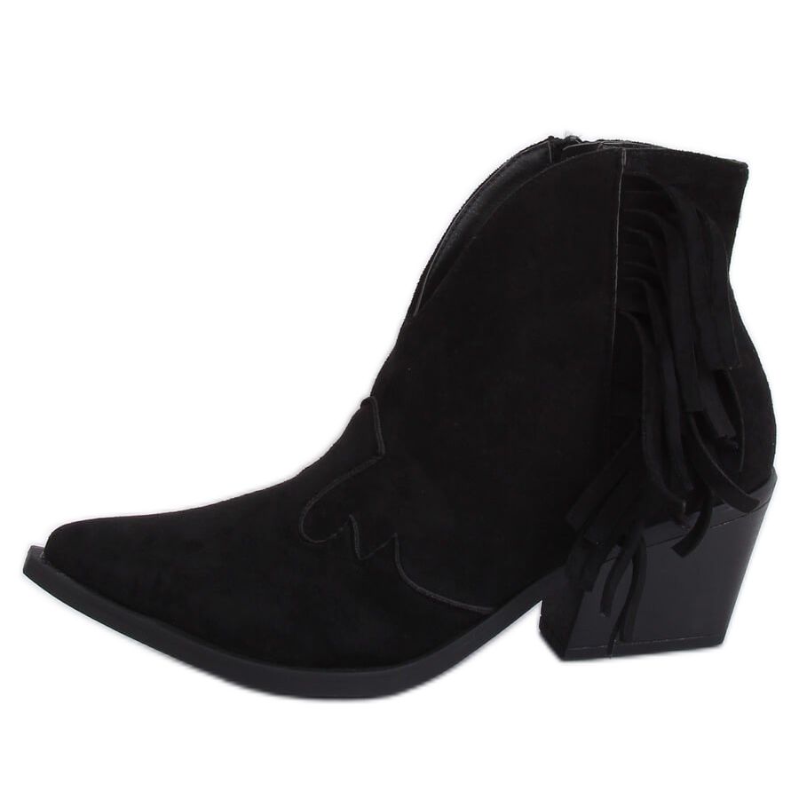 Predstavljamo vam izuzetno elegantne ženske kaubojske čizme NC999 Black koje su savršen izbor za proljetne dane. Ove crne čizme sa širokom petom, visine 6,5 cm, pravi su modni hit, a ističu se oblikovanim vrhovima, impresivnim izrezima i resicama. Zahvaljujući njima, svaki će styling dobiti jedinstven karakter.