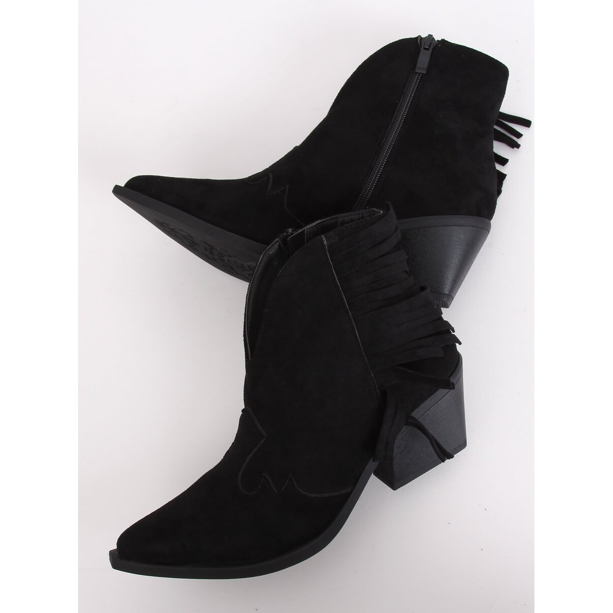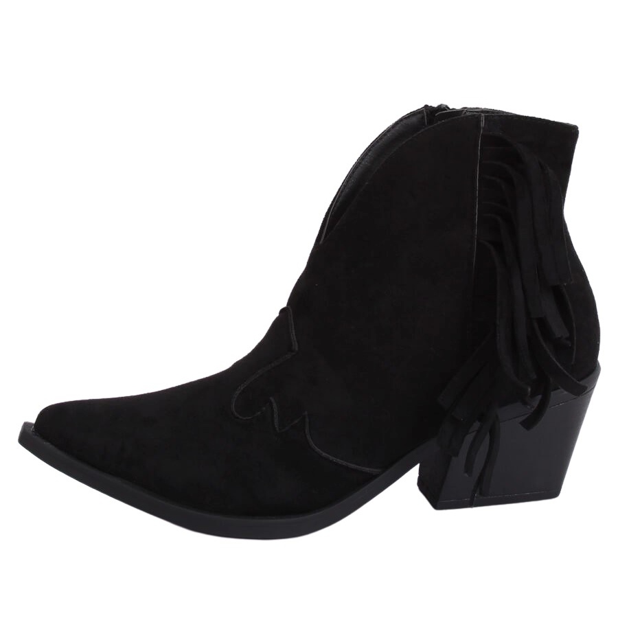 Otkrijte jedinstvene ženske crne kaubojske čizme NC999 Black koje će postati neizostavan element vaše proljetne garderobe! Ove moderne čizme sa širokom petom od 6,5 cm spajaju stil i udobnost, a njihov jedinstveni dizajn sa oblikovanim vrhovima, izrezom sprijeda i resicama zasigurno će privući pozornost.