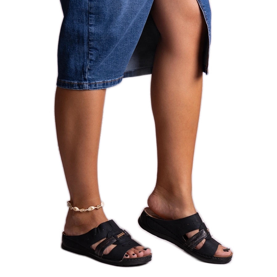 Black Classic pjenasti flops odličan je izbor za svaku ženu koja želi kombinirati udobnost s modernim stilom. Napravljene od organske kože visoke kvalitete, ove papuče na platformi ne samo da naglašavaju moderan izgled, već nude i praktičnost nošenja tijekom dana. Zahvaljujući atraktivnoj, metalnoj površini, ovi flapovi upadaju u oči i dobro se miješaju s ljetnim stilizacijama.