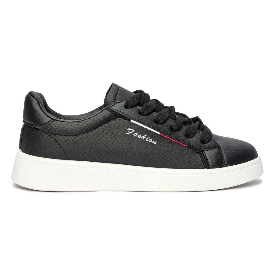 Crne sportske cipele s bijelim potplatom klasični su izbor koji će biti odlično u svakodnevnim stilizacijama, kako u ležernim i modernim. Savršeni za nošenje svakog dana, odgovaraju mnogim različitim odijelima. Zahvaljujući originalnom dominantnom uzorku u obliku životinjskog motiva, ove će cipele sigurno privući izgled.