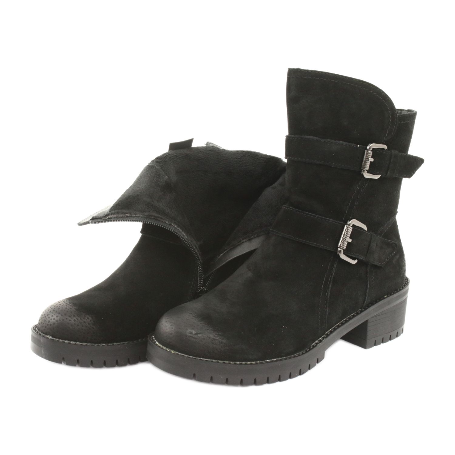 Upoznajte M.Daszyński 161 gležnjače od brušene kože, savršene za hladnije dane! Ove elegantne crne čizme savršeno spajaju moderan dizajn s udobnošću nošenja. Izrađene od prirodne velur kože, nude stil i izdržljivost.