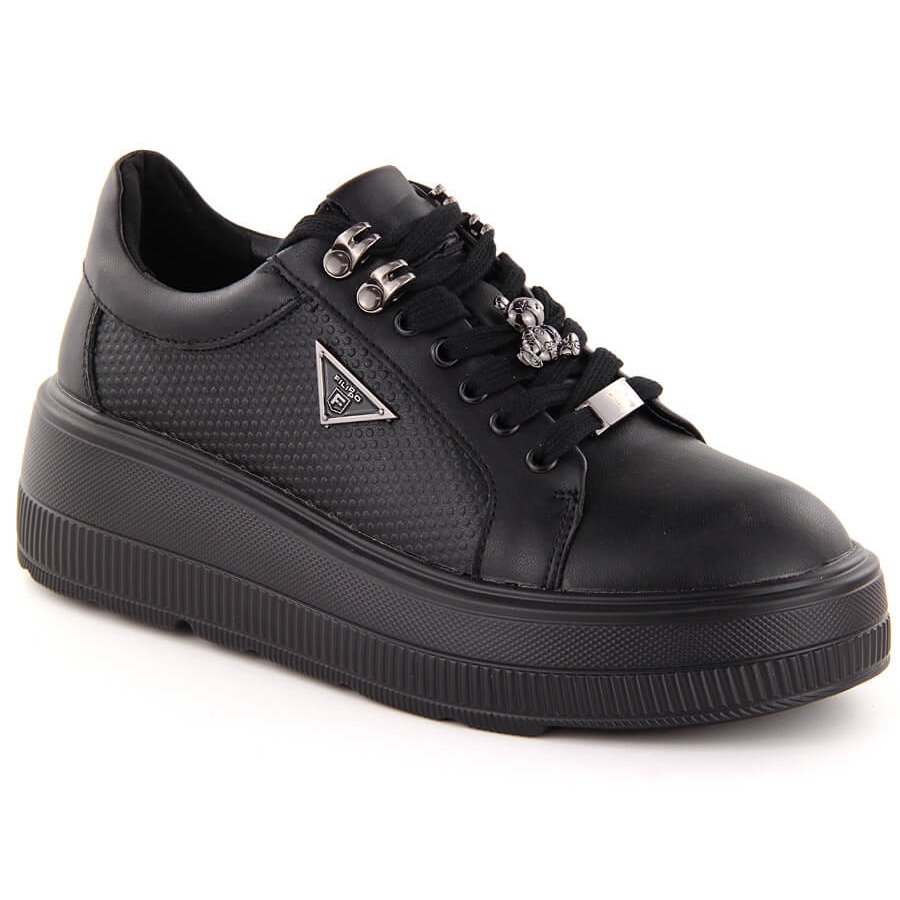 Crne kožne ženske cipele na platformu Filippo DP6382 crna