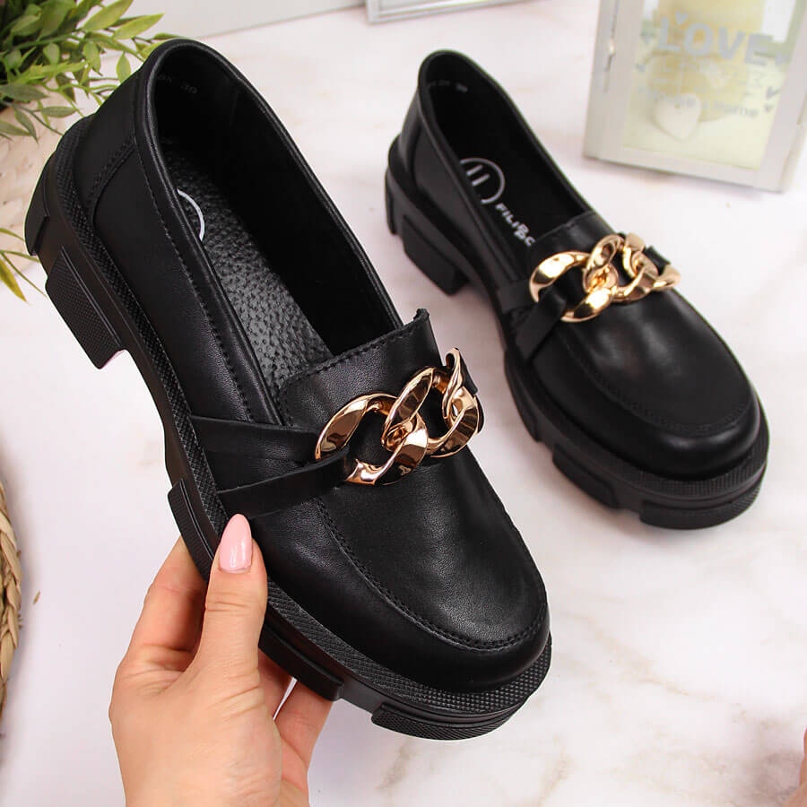 Crne kožne ženske cipele s lancem Filippo crna