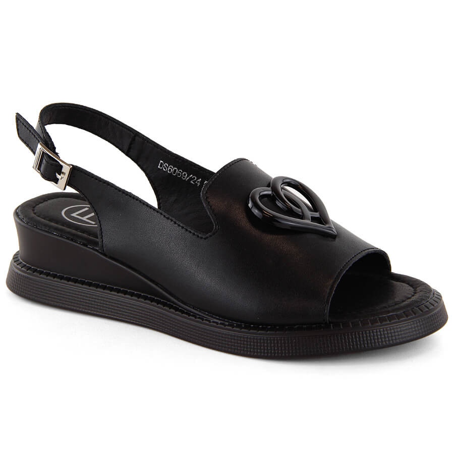 Model DS6069 odlikuje se klasičnim krojem i crnom bojom što ga čini univerzalnim dodatkom svakom outfitu. Unutrašnjost sandala opremljena je mekim kožnim uloškom koji osigurava udobnost tijekom cijelog dana, a klin visine 4,5 cm dodaje eleganciju bez opterećenja stopala.
