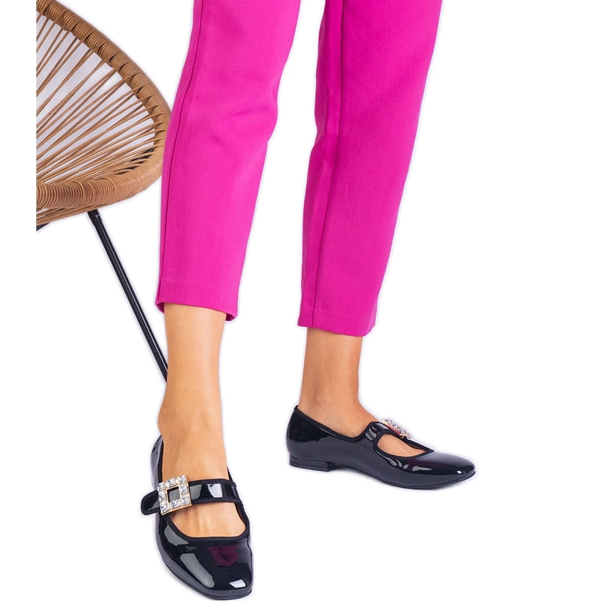 Crne lakirane balerine ukrašene kopčom crna