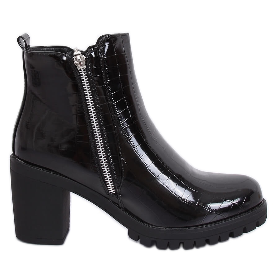 Predstavljamo elegantne crne lakirane Chelsea čizme DA37P Black - savršen izbor za žene koje cijene moderan stil i udobnost. Ove jedinstvene čizme izrađene su od impresivno reljefne ekološke kože s lakiranom završnom obradom koja naglašava njihov elegantan karakter. Zahvaljujući širokoj peti visokoj 8 cm i platformi, svaki korak postaje sigurniji, a noge postaju optički duže.