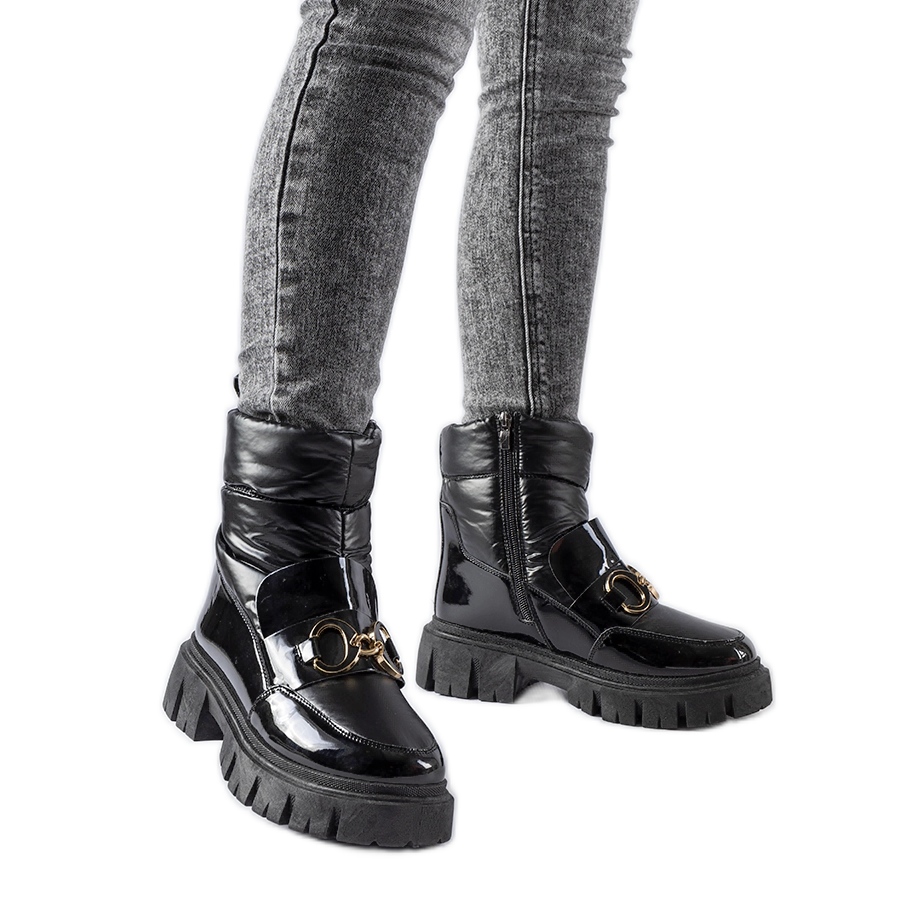 Crne lakirane čizme za snijeg s Elijah kopčom crna