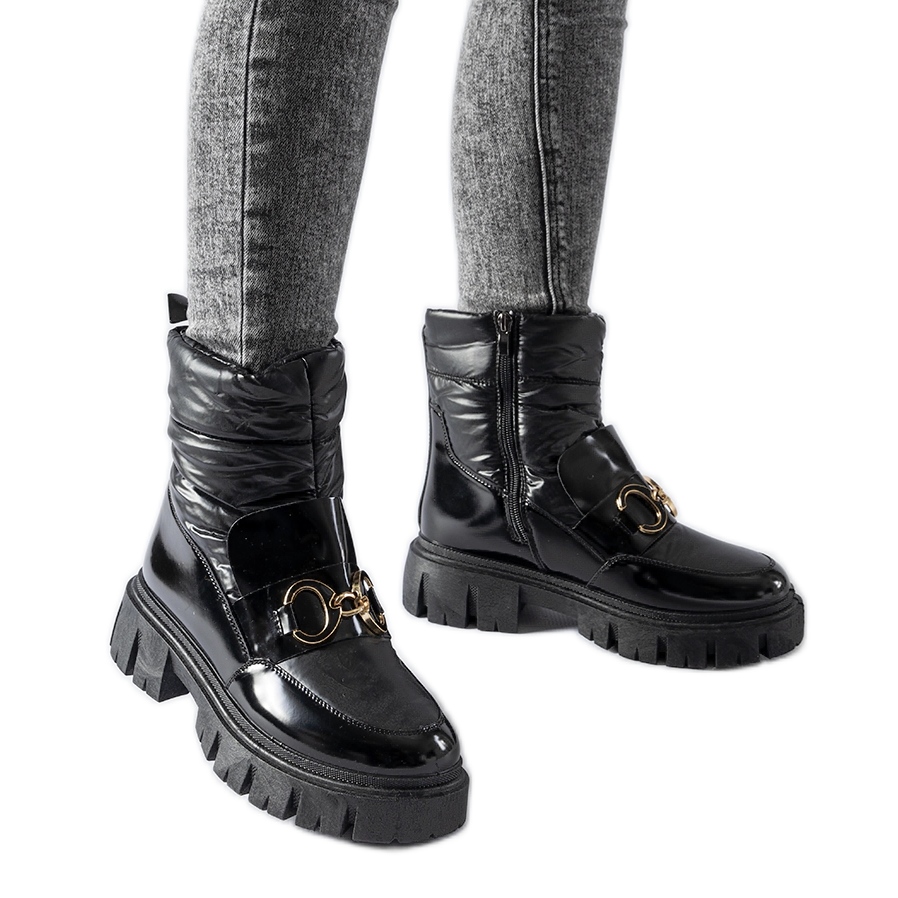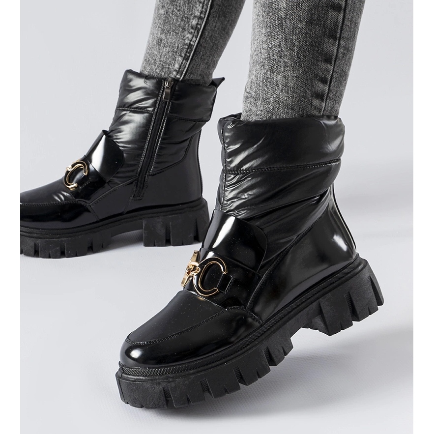 Pojedinosti: Crne lakirane čizme za snijeg sa zimskom kopčom crna