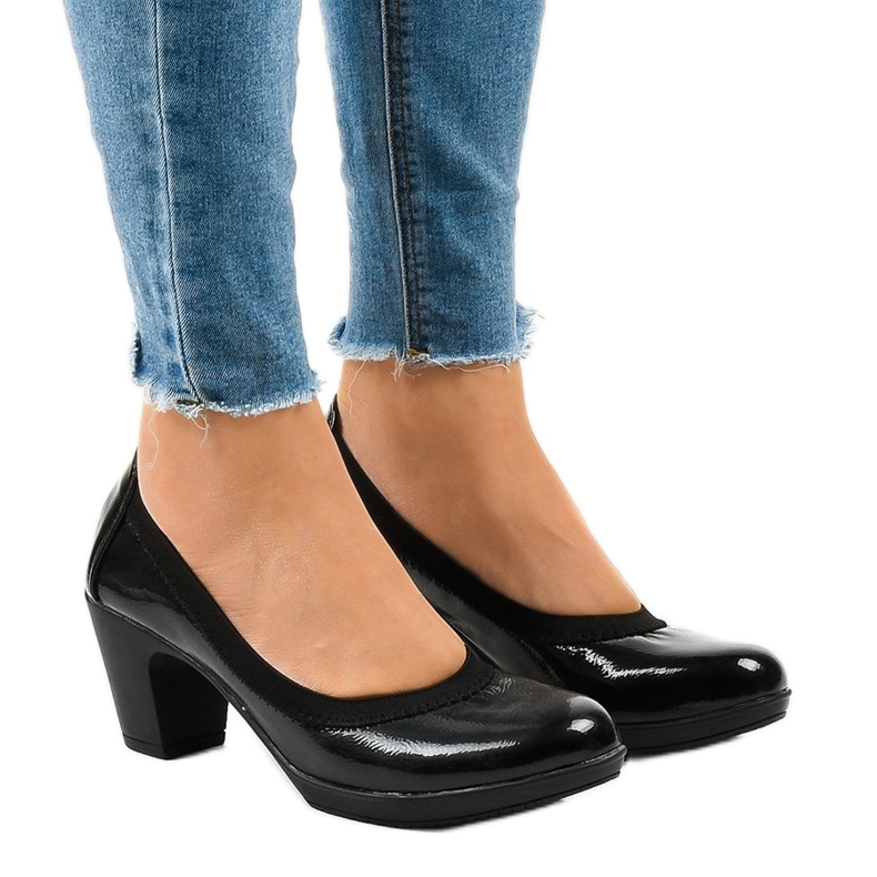 Crne lakirane cipele na petu 579-2 savršen su izbor za žene koje cijene eleganciju u kombinaciji s udobnošću. Izrađene od visokokvalitetnog, estetskog materijala nalik na kožu, ove se cipele ističu besprijekornom lakiranom završnom obradom koja im daje šik izgled. Univerzalna crna boja savršeno ih pristaje uz razne stilove - kako za svakodnevnu upotrebu tako i za svečanije prigode.