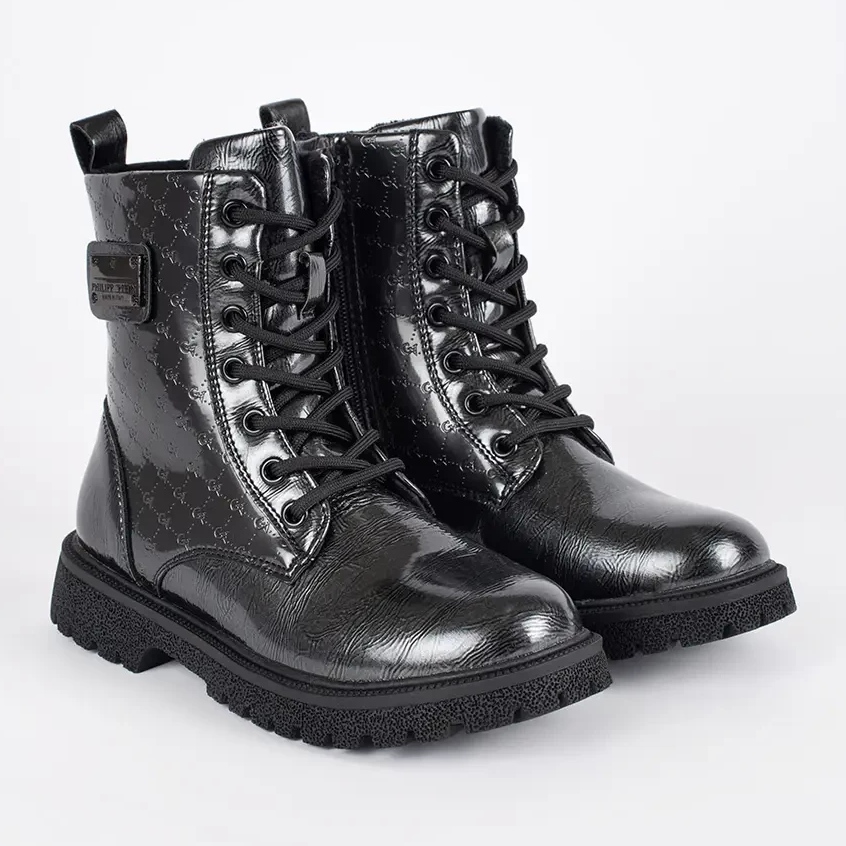 Tražite li obuću koja će raditi i u školi i tijekom obiteljskih šetnji? Crne lakirane čipke -up čizme su bik -eye, kombinirajući moderan izgled s svakodnevnom funkcionalnošću. Odaberite ovaj model za jesen/zimsku sezonu i uživajte u svakom koraku!