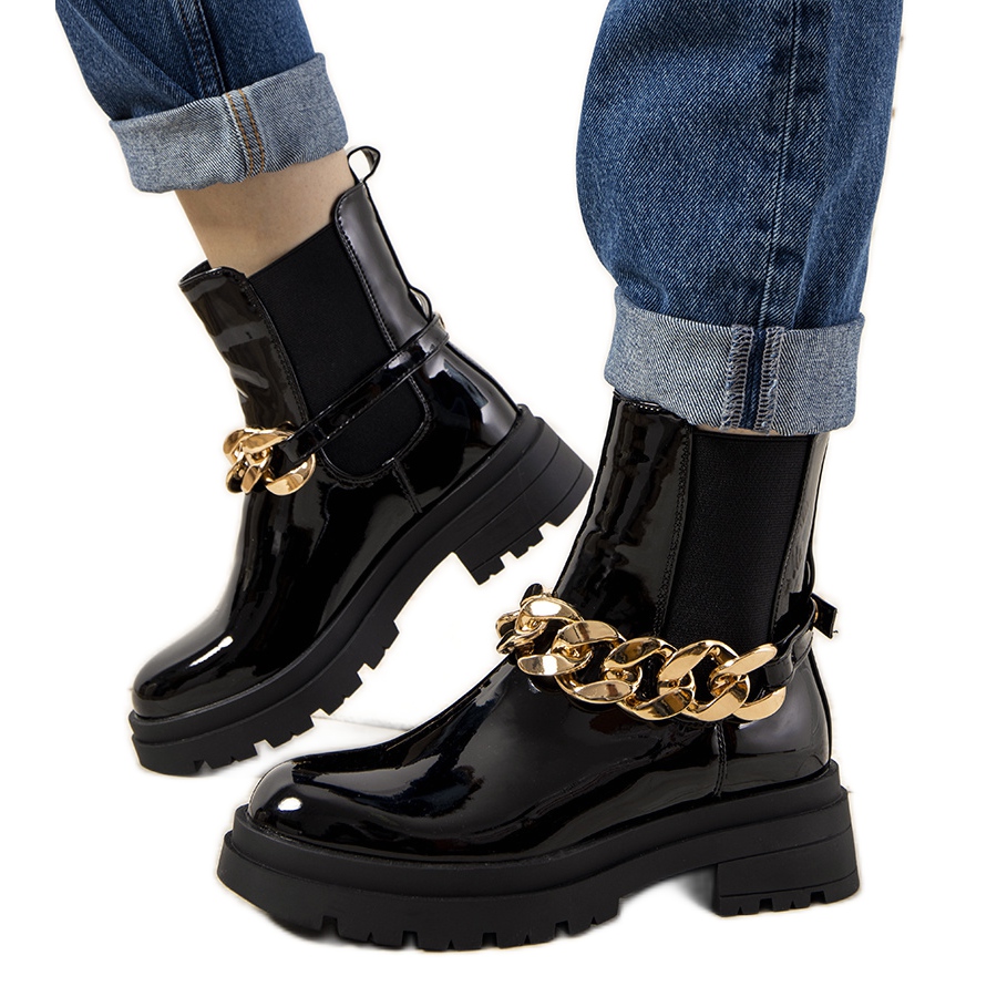 Pojedinosti: Crne lakirane gležnjače s Tapia lancem crna