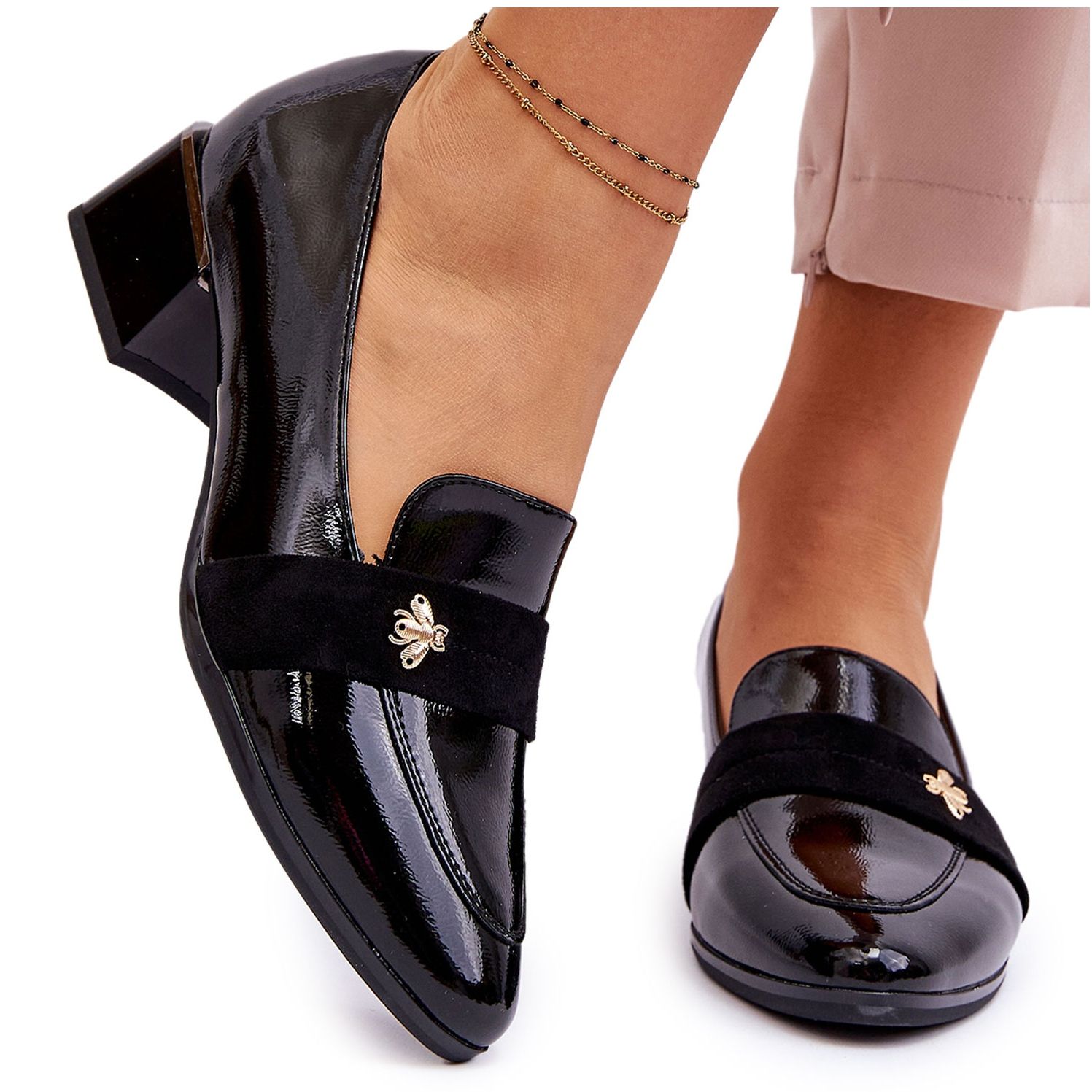 Pojedinosti: Vinceza Crne lakirane kožne cipele na nisku petu s ukrasom Doria crna