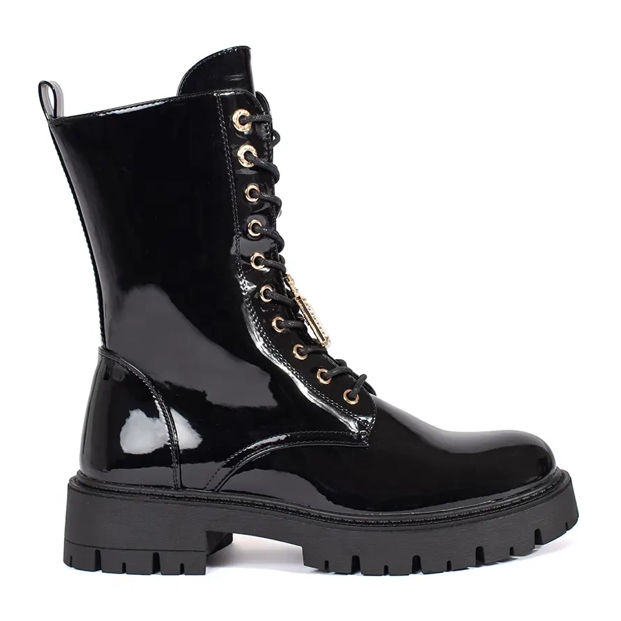 Detalji: Seastar Crne lakirane radne gležnjače na vezanje na platformu s iglama crno