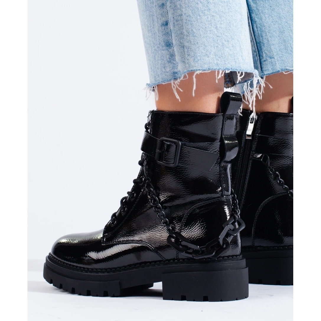 Crne lakirane radničke čizme s lancem Shelovet crna