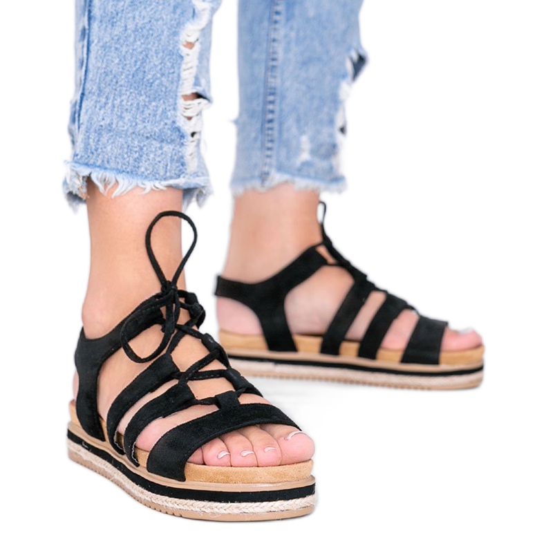 Pojedinosti: Crne Layla sandale na vezanje crna