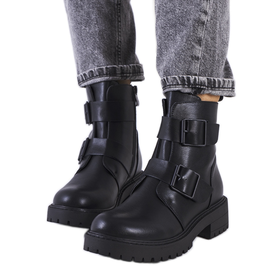 Black Lebost čizme - elegantne, udobne i spremne za hladnije dane. Napravljen od eko -odlazaka, postavljeno na niskoj, 4 cm pete sa zaštitnikom, s suptilnim obrezivanjem malih zakovica, što dodaje stijenski karakter. Gornji doseg gležnja (oko 18 cm) s petljom straga i dekorativnim šivanjem naglašava dizajnerski završetak. Dvije pruge s kopčama i okrugli nos tvore moderan izgled, a pričvršćivanje na patentni zatvarač iznutra olakšava stavljanje - osim toga, vezanje vam omogućuje da uskladite rez s nogom. Unutrašnjost izolirana pokrivačem obuće pruža toplinsku udobnost u jesenskoj i zimskoj sezoni.