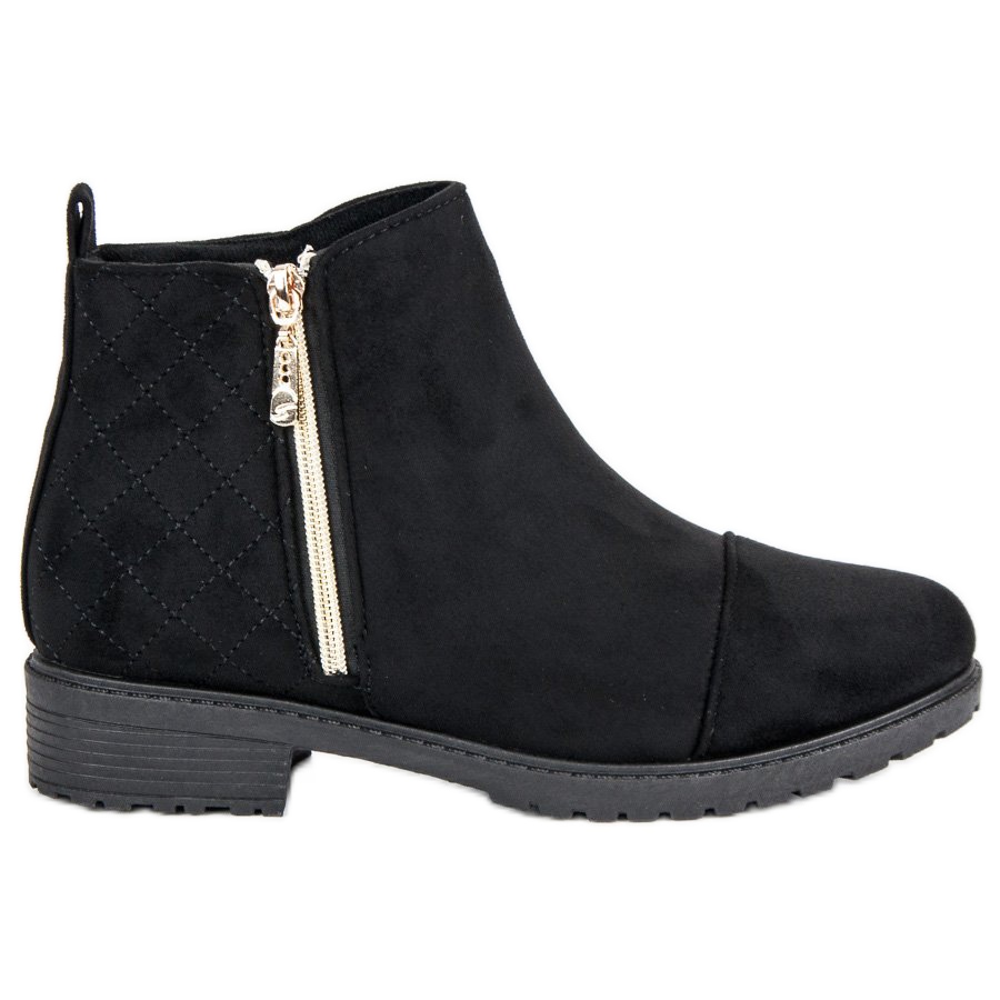 Zatvarač koji se nalazi sa strane olakšava kupnju i izuvanje cipela, što je posebno cijenjeno u svakodnevnoj upotrebi. Crne gležnjače odlikuju se jedinstvenim stilom zahvaljujući prošivanju i zlatnom patentnom zatvaraču, spajajući ženstvenost s modernošću. Unutrašnjost čizama osigurava udobnost, a fleksibilni potplat dobro izolira od neravnog tla, što povećava udobnost nošenja.