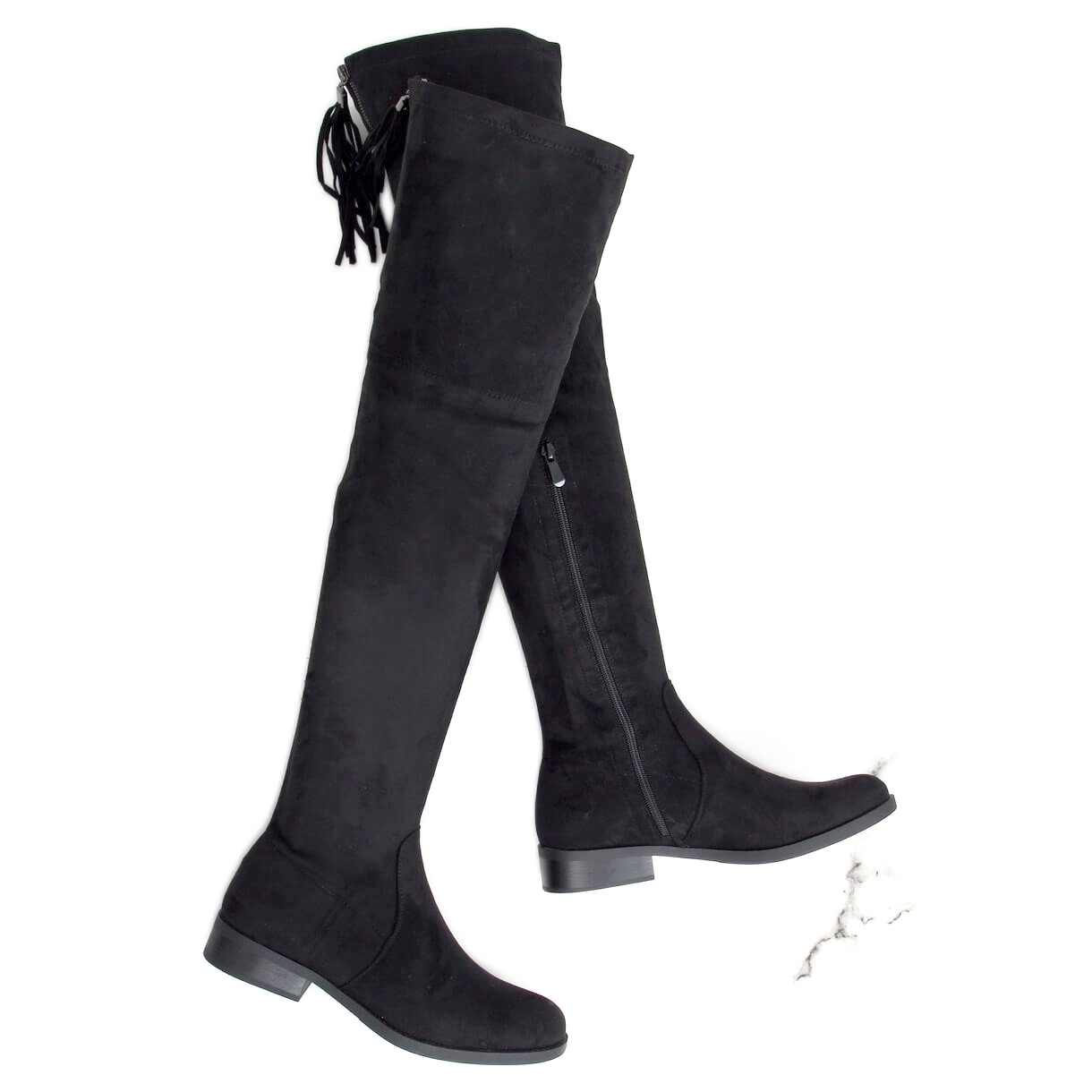 Detalji: Crne LH53-1 Crne čizme s ravnim potpeticama crno