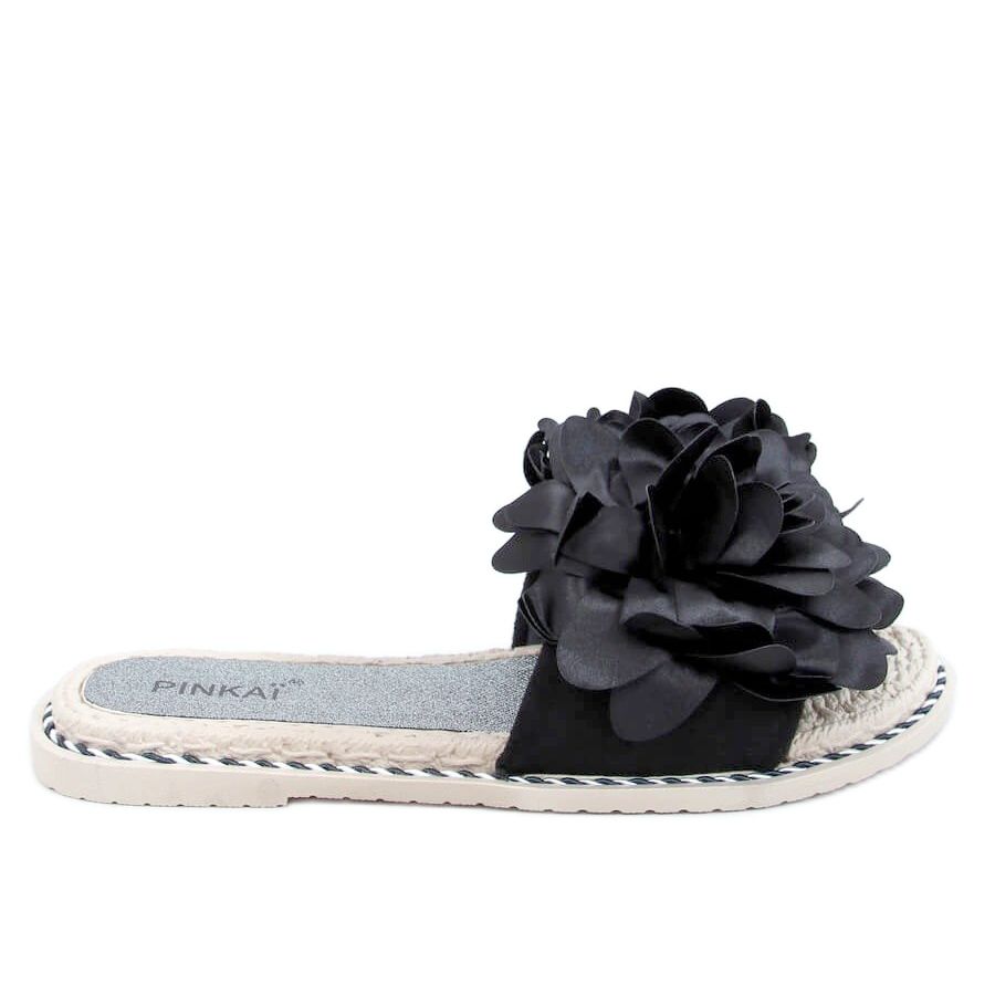 Crne LS005 Crne ženske papuče s cvijećem crna