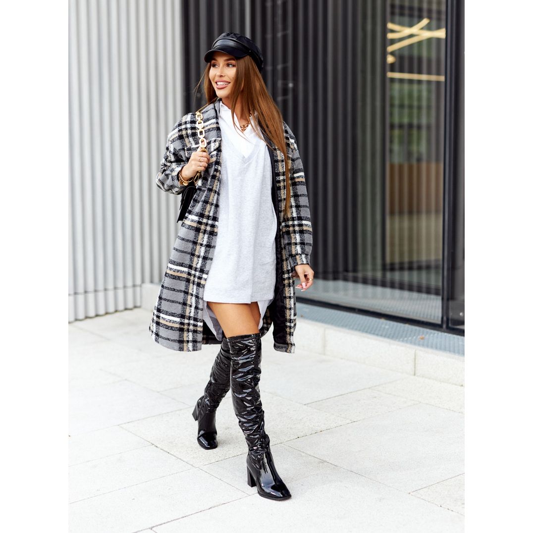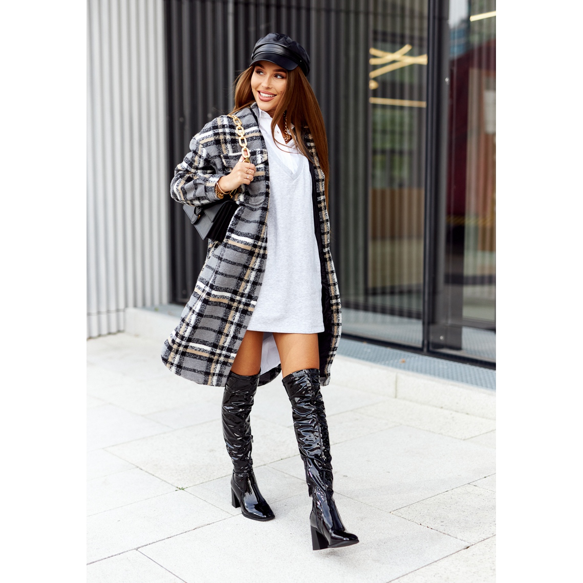 Njihovo visoko gornjište, koje doseže 57 cm, obogaćeno je udobnim patentnim zatvaračem na dnu koji olakšava obuvanje. Okrugli vrh i široka peta visoka 8 cm osiguravaju stabilnost i udobnost nošenja tijekom cijelog dana. Ove čizme opremljene su pokrivačem za cipele, a izolirani uložak pruža toplinu čak iu hladnim danima.