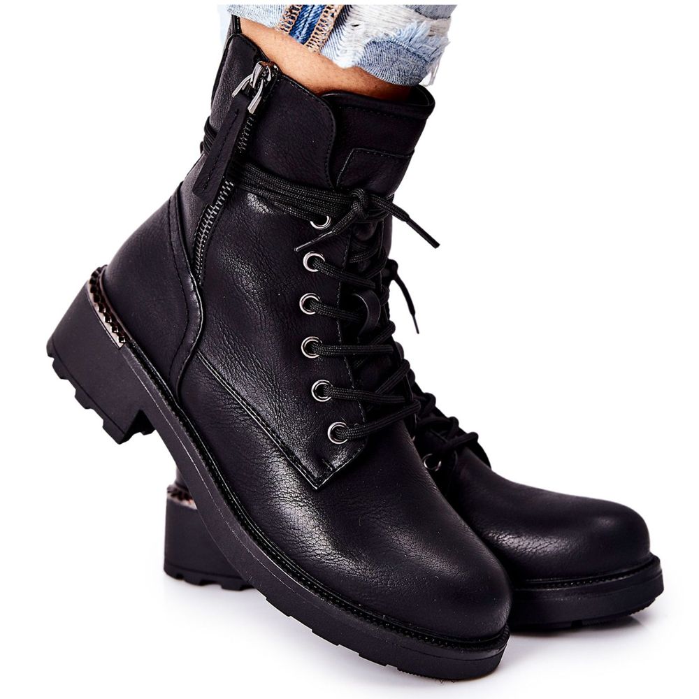 Pojedinosti: Crne Maisa visoke radne čizme s patentnim zatvaračima crna