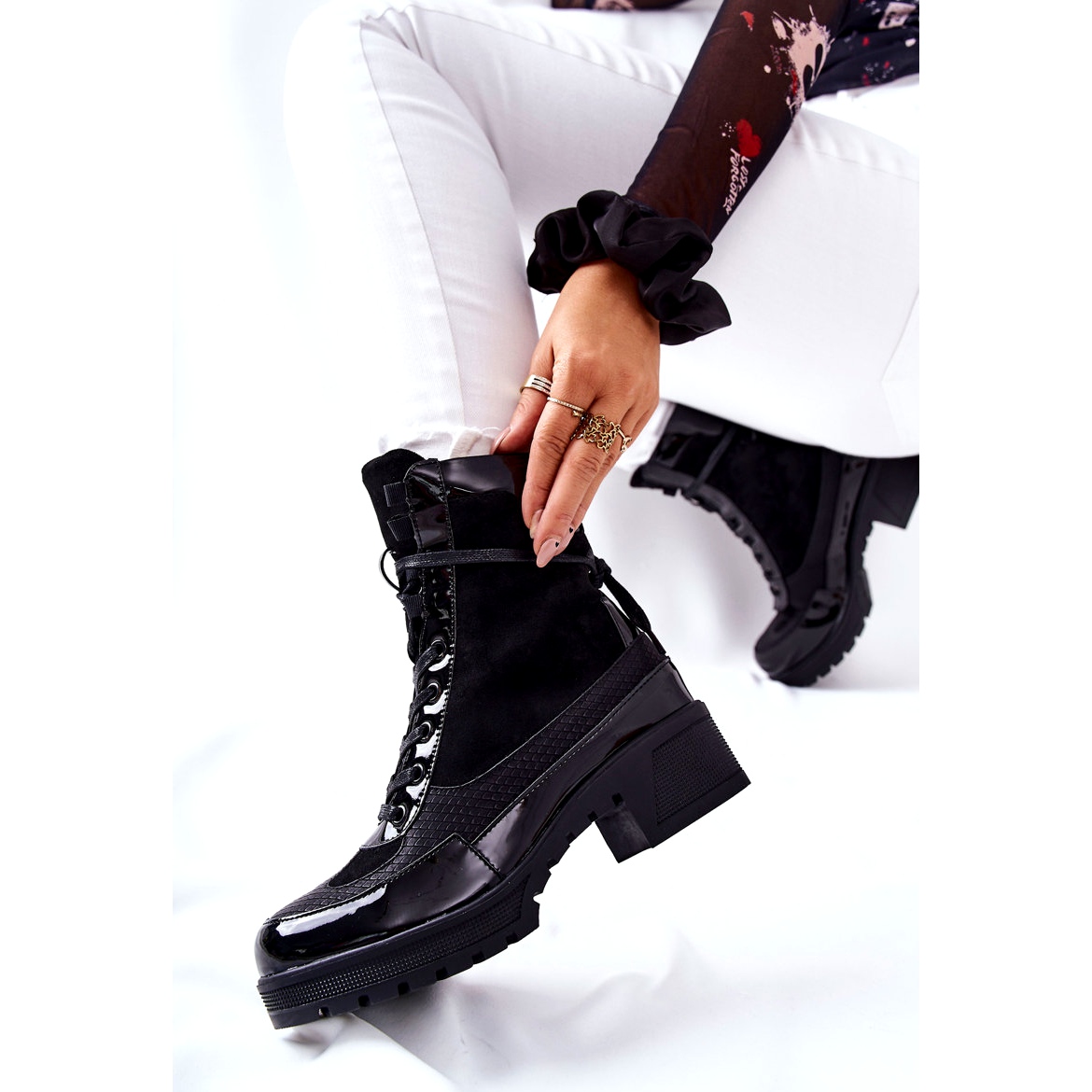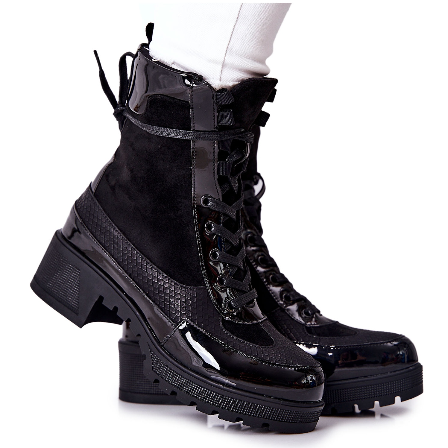 Otkrijte eleganciju i udobnost koju nude crne kožne gležnjače Meridiah. Izrađene od visokokvalitetne eko-kože, ove gležnjače spajaju stil i funkcionalnost. Gornji dio gornjeg dijela i potplat presvučeni su lakiranom eko kožom koja im daje jedinstveni sjaj. Delikatni uvez ne samo da dodaje šarm, već također osigurava savršeno pristajanje uz nogu.