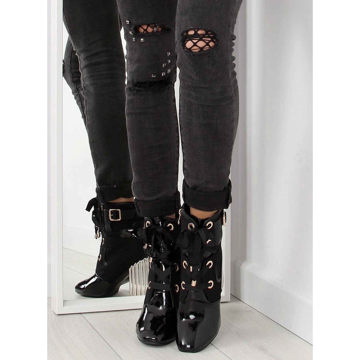 Izrađene od lakirane kože i tkanine s teksturom platna, ove čizme izgledaju zaista impresivno. Originalna potpetica visoka 10 cm dodaje klasu i omogućuje vam da se osjećate samouvjereno u svakoj situaciji. Dizajn na vezanje obogaćen je praktičnim patentnim zatvaračem, što njihovo nošenje čini čistim užitkom.