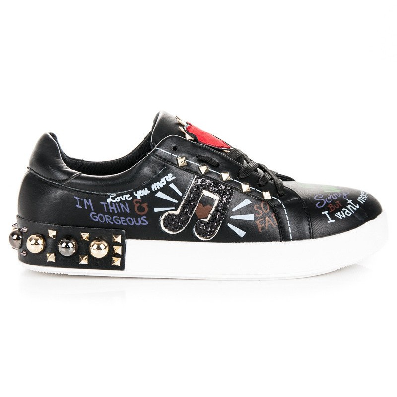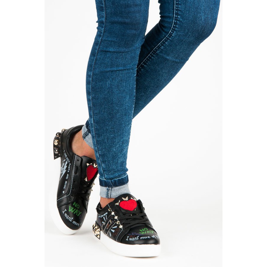 Crne tenisice karakterizira vrlo izražajan dizajn koji privlači pažnju. Brojni ukrasi, uključujući nitne i jedinstvene natpise, daju im rock karakter, što ih čini idealnim izborom za žene koje se žele istaknuti iz mase. Međutim, njihov atraktivan izgled nije sve - udoban uložak od tkanine čini nošenje ovih cipela užitkom čak i više sati.