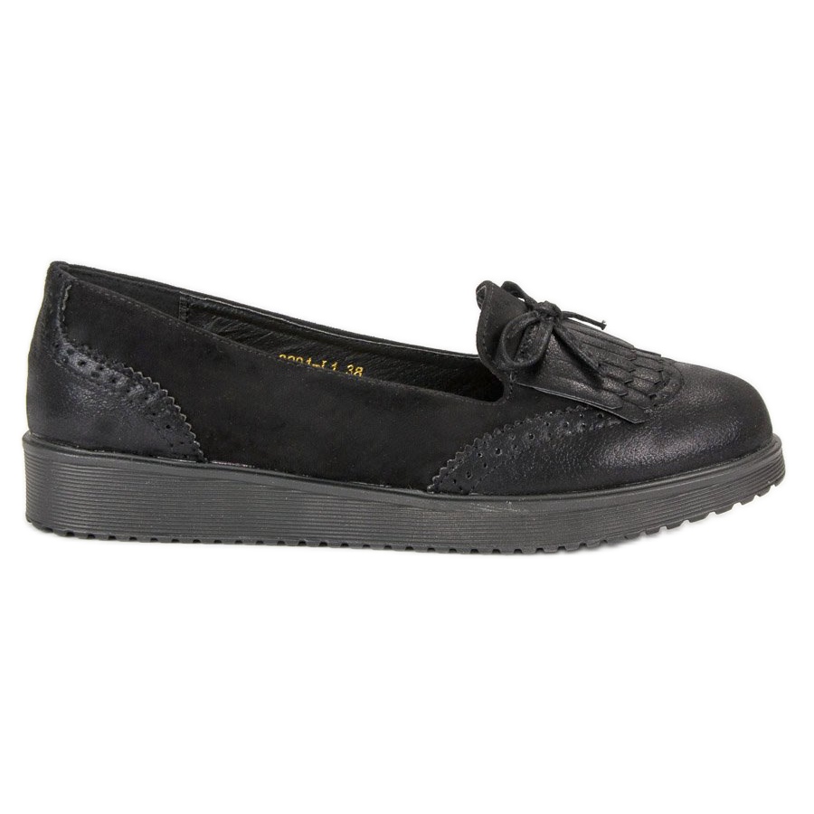 Dizajn ovih mokasina privlači pozornost - nježni ažur i ukrasne resice te mašna daju cipelama lakoću i eleganciju, a crne boje pristaju uz mnoge stilove. To je savršen spoj klasike i modernog koji će zadovoljiti ukus i najzahtjevnijih žena.