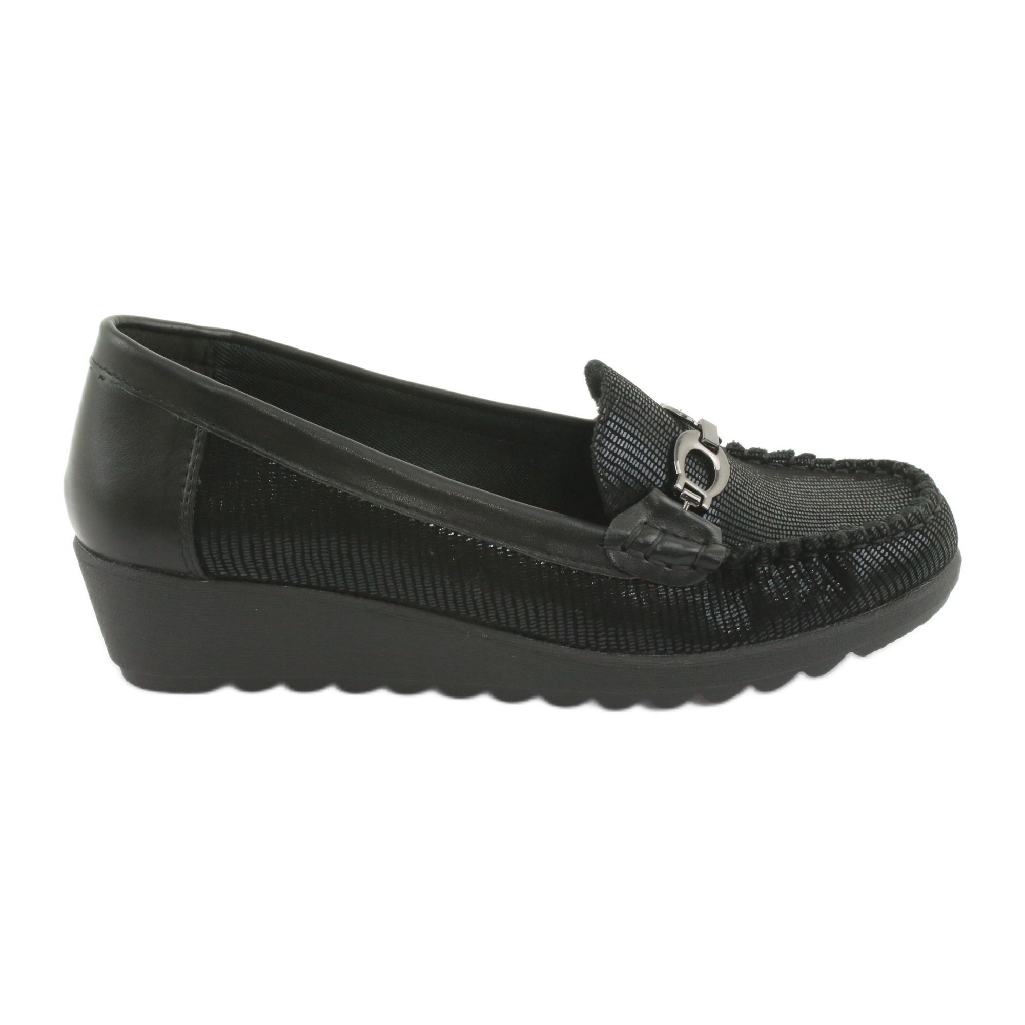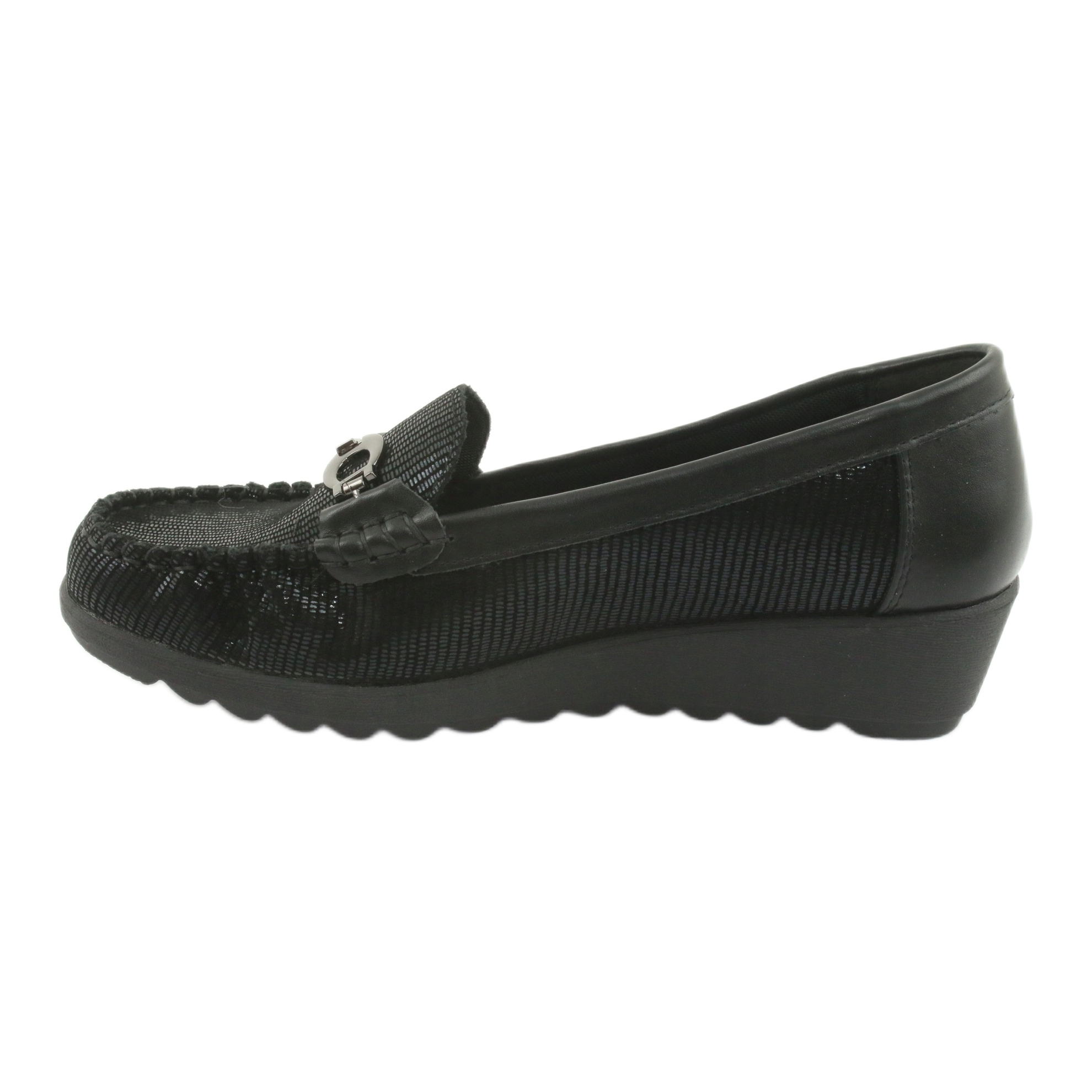 Univerzalna crna boja čini da se natikače uklapaju u različite stilove - od elegantnih, svečanih odjevnih kombinacija do ležernih, sportskih kombinacija. S nešto višim klinom od 3,5 cm, cipele dodaju suptilan šarm i izdužuju siluetu, bez žrtvovanja udobnosti nošenja.