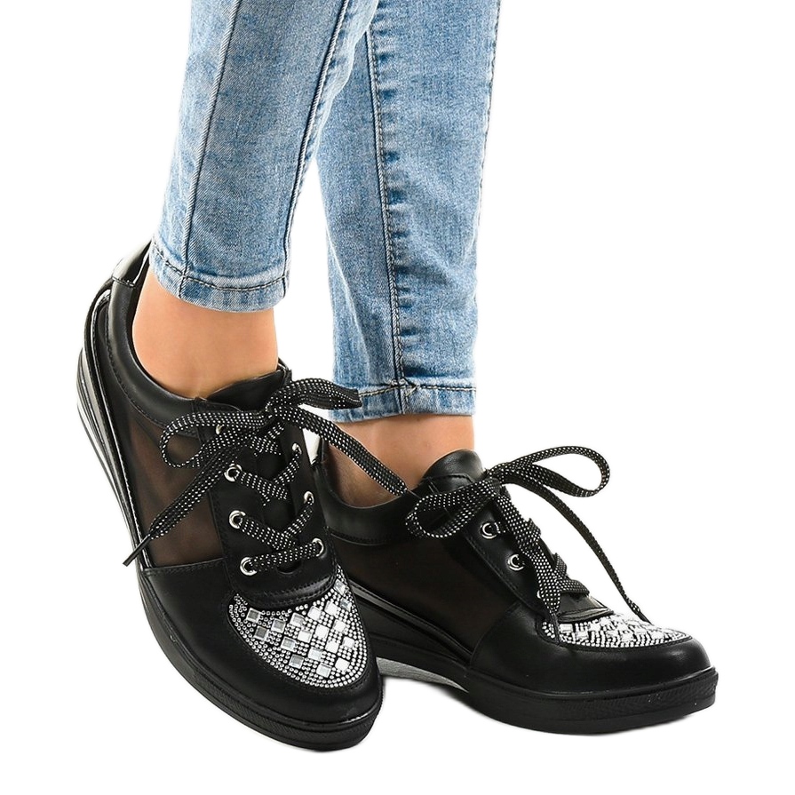 Crne mrežaste tenisice na klin TL-29 crna