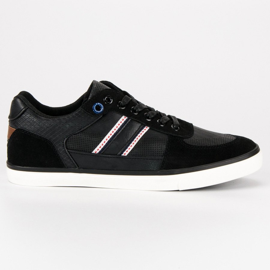 Univerzalne, udobne i bezvremenske - ove crne muške tenisice neizostavan su element muške garderobe. Izrađene od ekološke kože s elegantnim umetcima od ekološke antilop kože, spajaju sportski karakter s elegantnom jednostavnošću. Dominantna crna boja sa suptilnim naglascima (smeđi element na leđima i bijele pruge sa strane) čini cipele lakim za uklapanje u mnoge stilove.