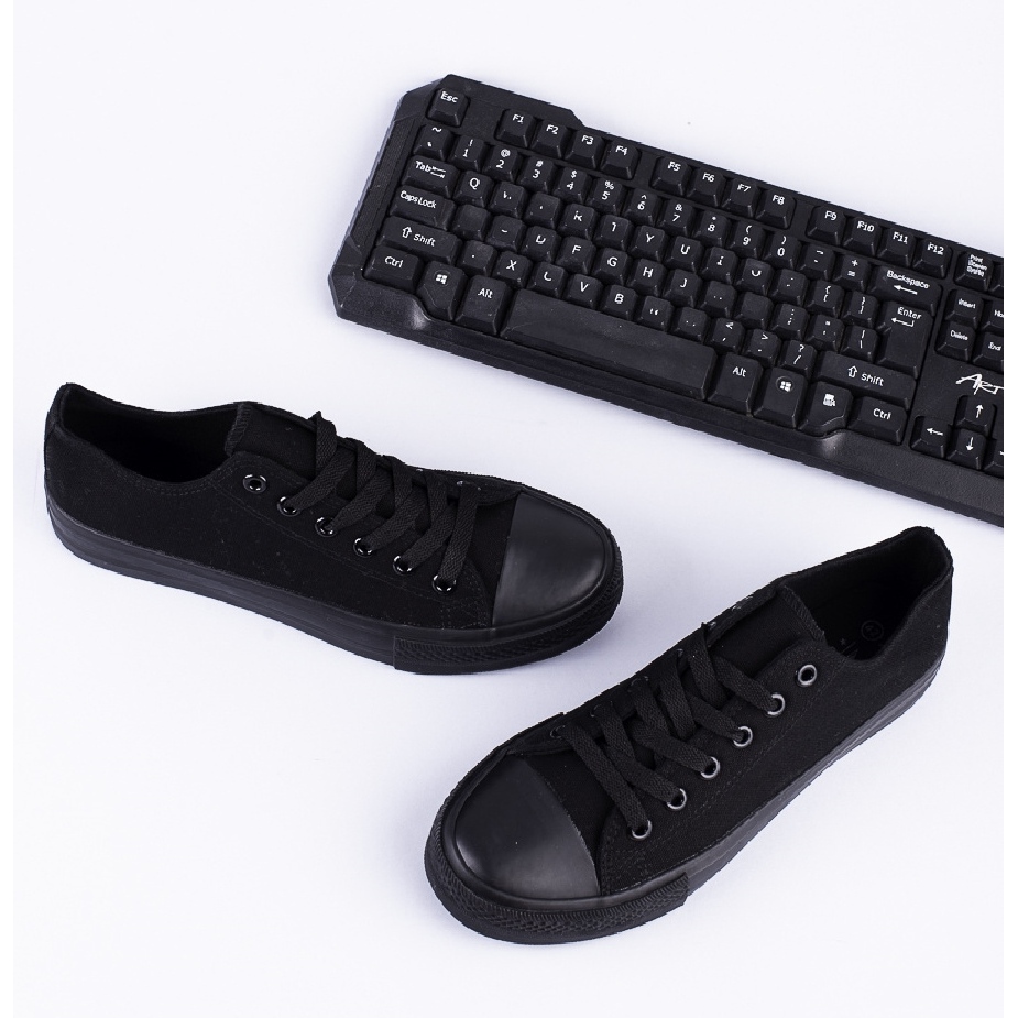 Crne tenisice odlikuju se punim vrhom i niskom visinom, što dodaje eleganciju. Potplat s gazištem od sintetičkih materijala jamči odgovarajuće prianjanje i izdržljivost, bez obzira na vremenske uvjete. Zahvaljujući verziji na vezanje, možete ih savršeno prilagoditi svom stopalu, što pruža dodatnu udobnost.