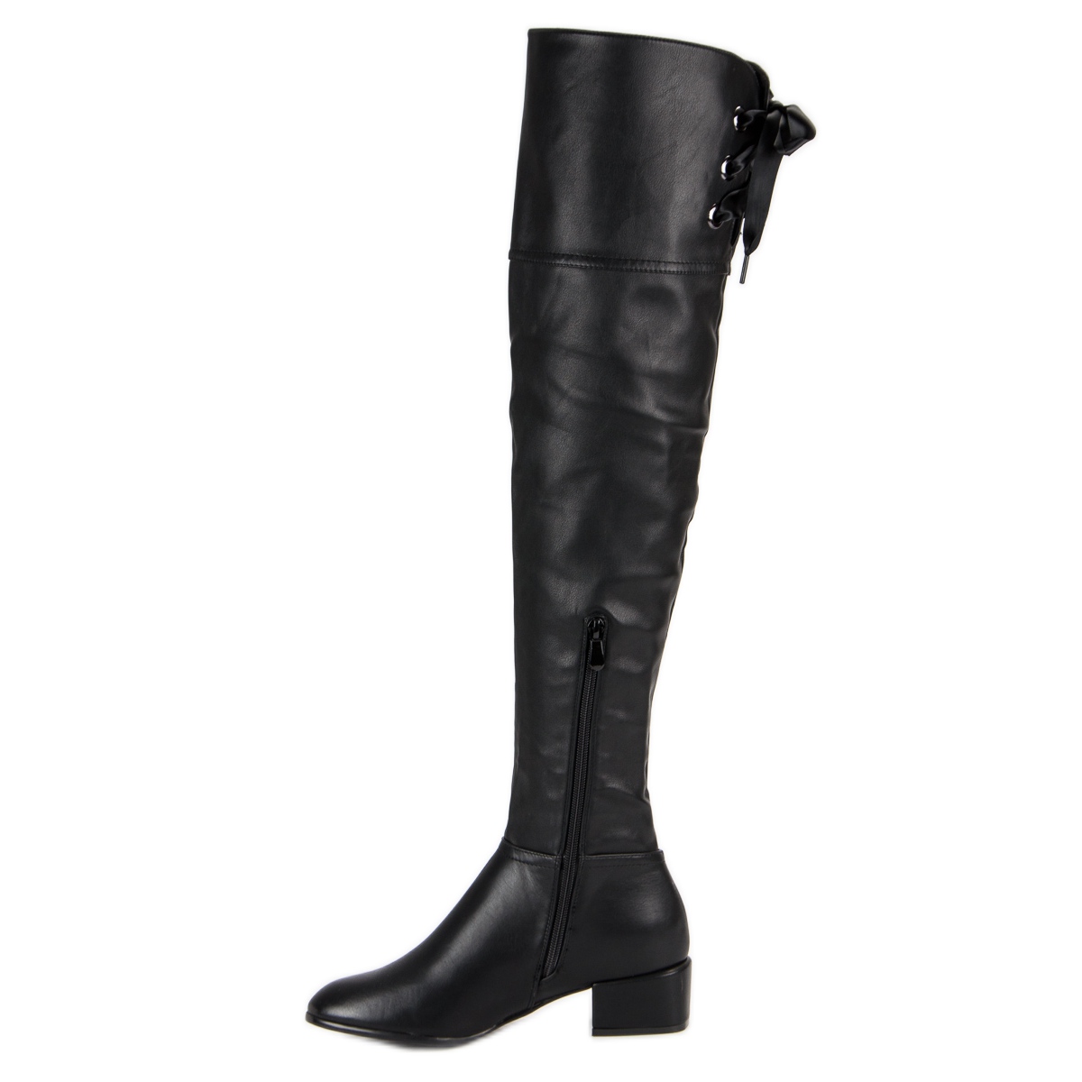 Klasičan kroj koji seže iznad koljena naglašava noge, silueti daje eleganciju i optički je izdužuje. Okrugli vrh i sintetički potplat osiguravaju udobnost i stabilnost pri svakom koraku. Bez uzorka i dodatnih ukrasa, ove čizme univerzalno su rješenje koje će se savršeno uklopiti u svaki stajling.