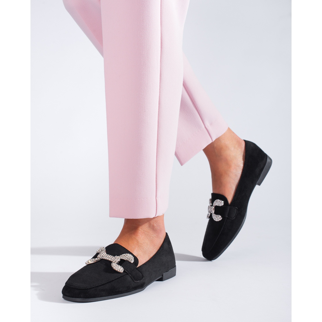 Unutar mokasina nalazi se umetak od ekološke kože, što dodatno povećava udobnost korištenja. Klasična crna boja čini ih iznimno univerzalnim - pristaju uz mnoge stilove, a dodatni ukrasi u obliku cirkona i kamenčića daju im jedinstven karakter.
