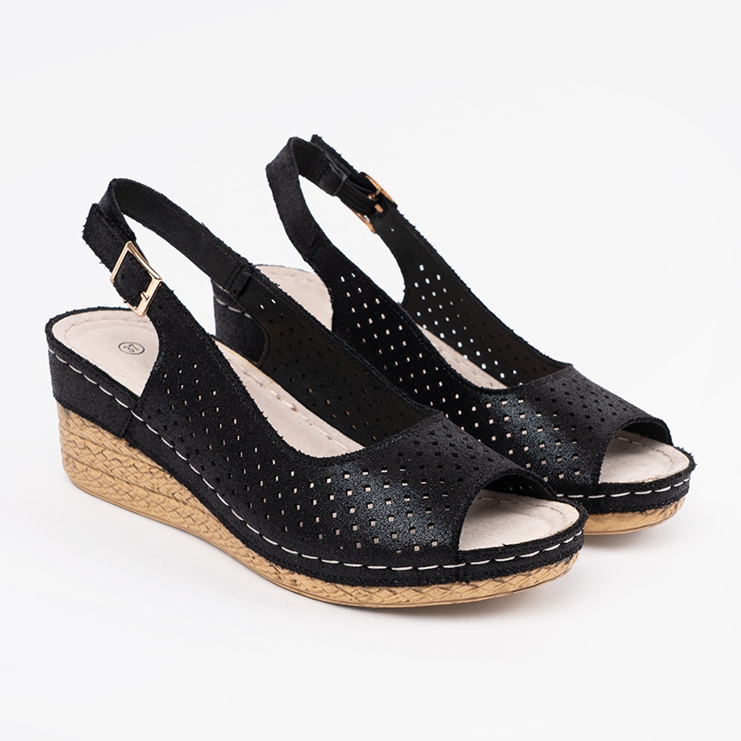 Pojedinosti: Goodin Crne otvorene sandale klina crna