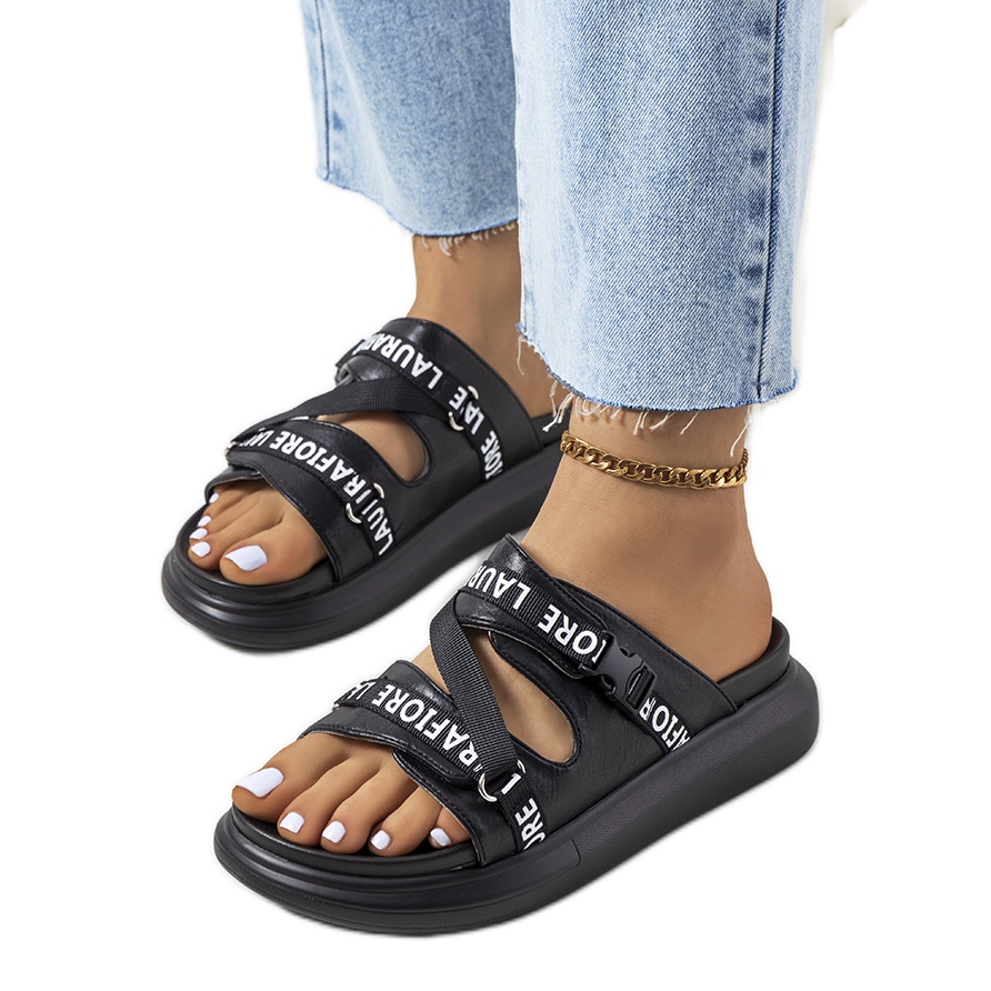Pojedinosti: Crne papuče na platformi crna