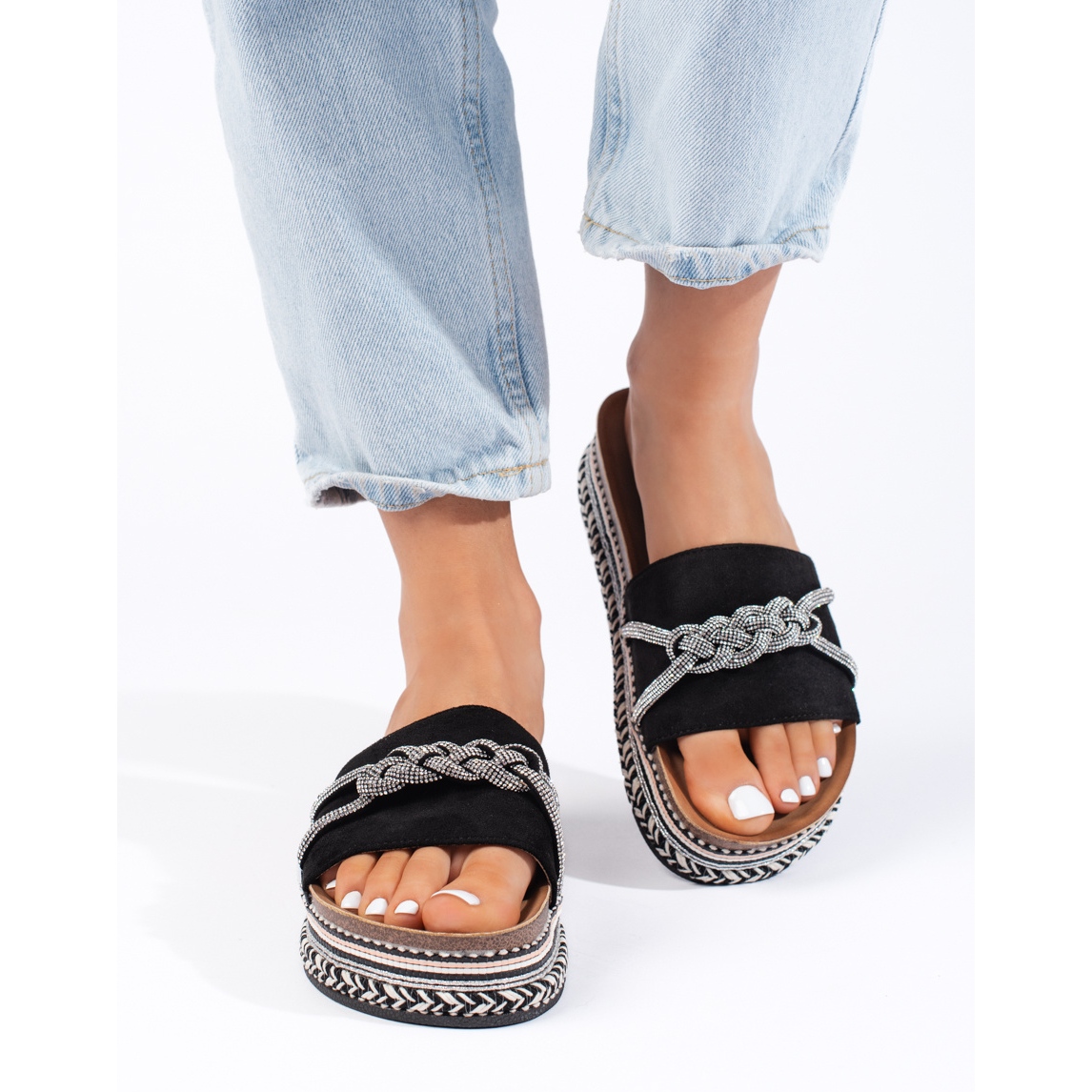 Dodatno, unutarnji uložak od imitacije antilopa čini stopala ugodnim, a kamenčići daju jedinstveni sjaj japankama. Klasična crna boja pristaje uz mnoge stilove - od svakodnevnih do onih elegantnijih.