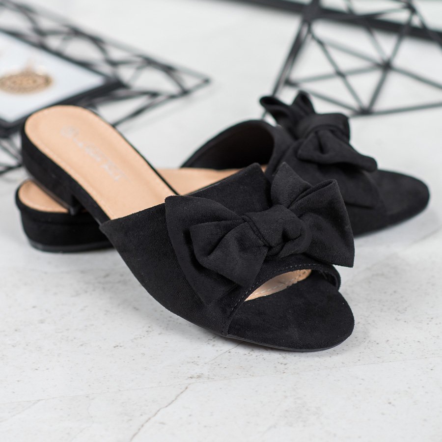 SHELOVET Crne papuče na ravnoj peti crna