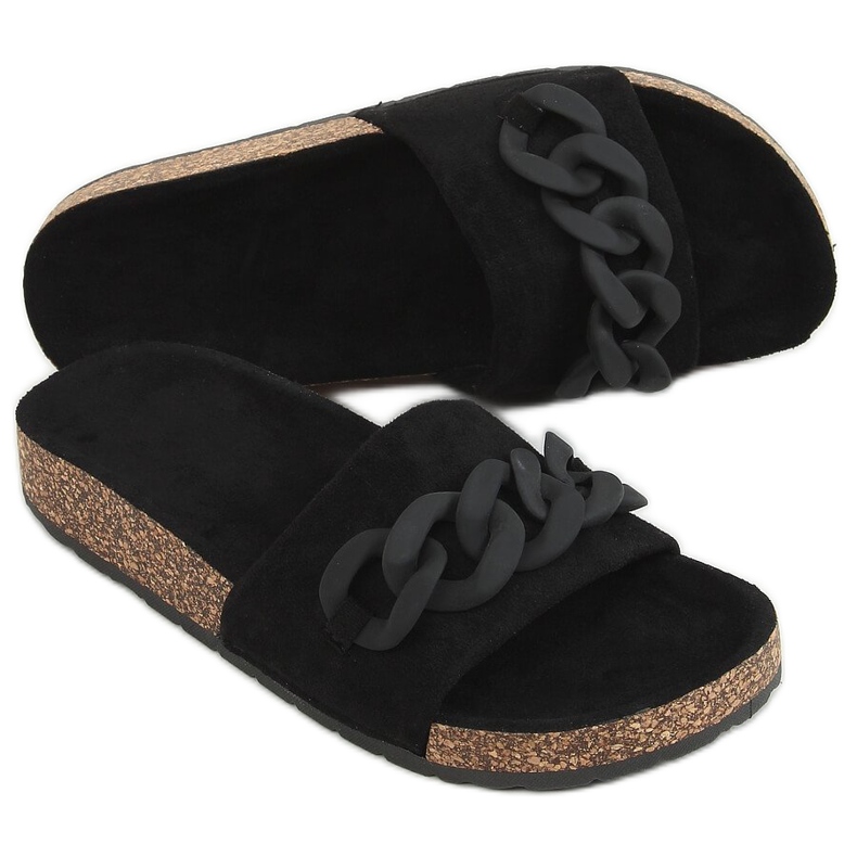 Pojedinosti: Crne papuče od pluta s lancem DZ907 Crna