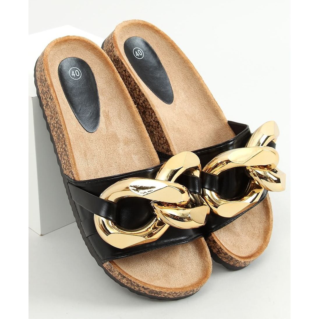 Pojedinosti: Crne papuče s debelim lancem crne CK201 Crne crna