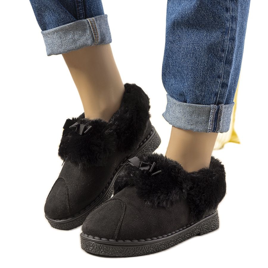 Pojedinosti: Crne papuče s krznom izolirane Valle crna