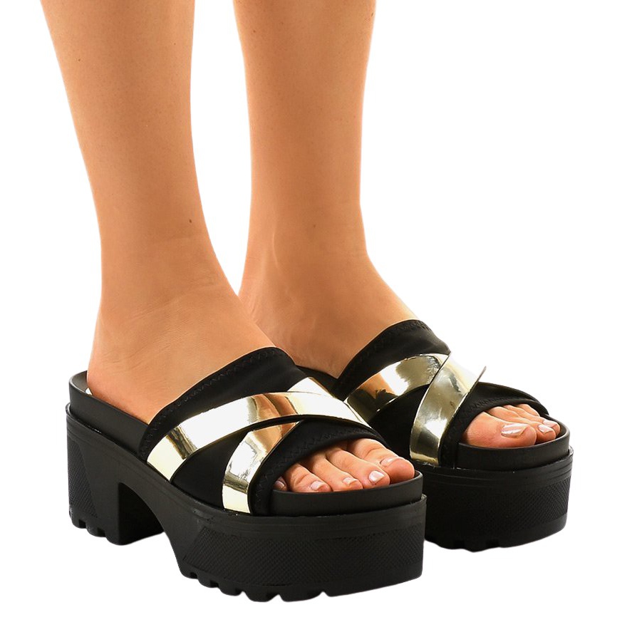 Crne papuče s visokim potpeticama CL-3A309-42 crna žuta boja