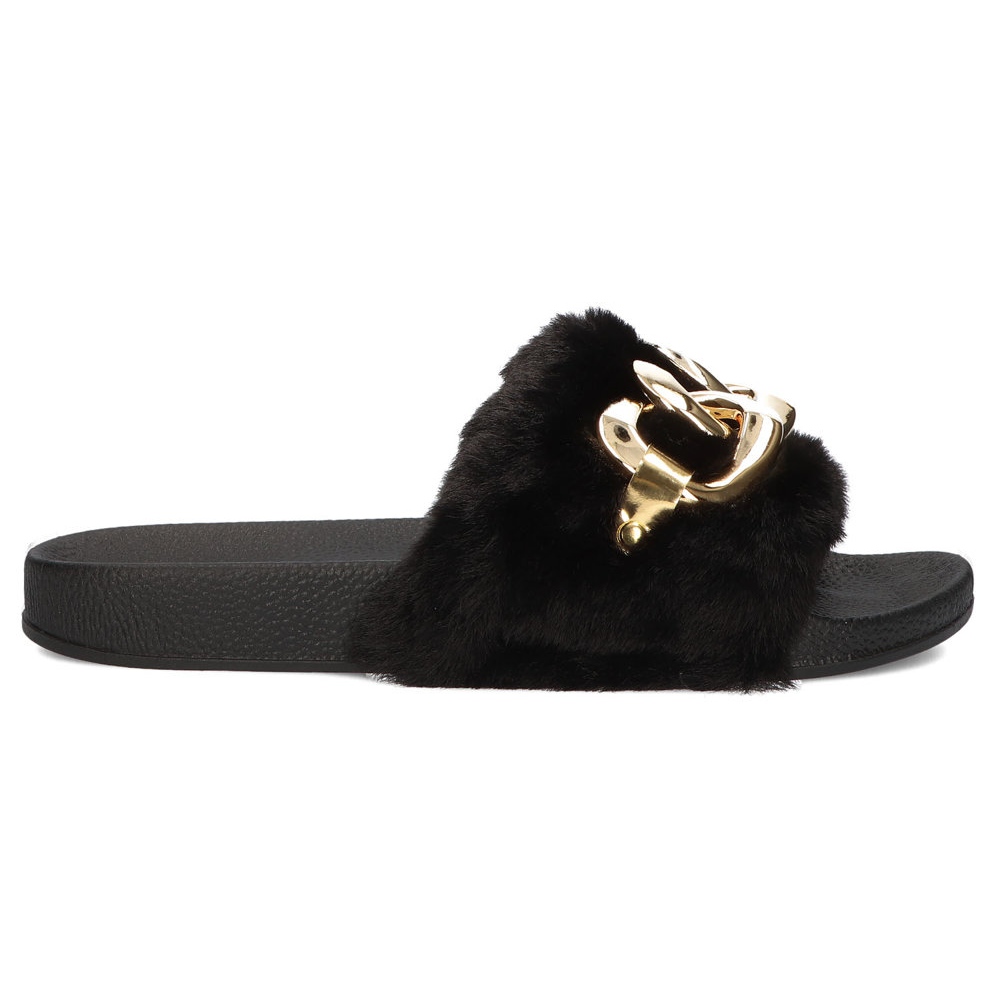 Filippo Filippo Crne papuče sa krznom, zlatni lančić QT300 crno