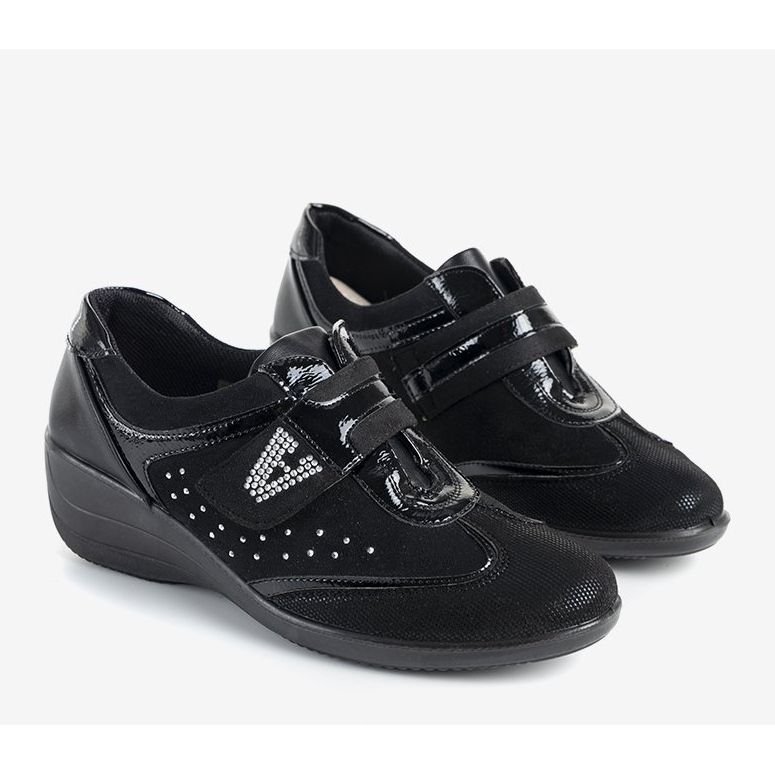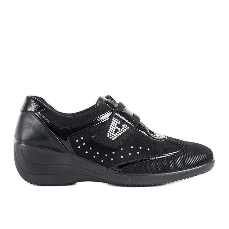 Otkrijte eleganciju i udobnost u crnim Merante cipelama na wedges, savršenim za moderne žene koje cijene stil i udobnost. Izrađene od visokokvalitetne antilop eko kože, ove cipele karakteriziraju suptilni ukrasi od lakirane eko kože i kamenčića koji im daju jedinstveni šarm.