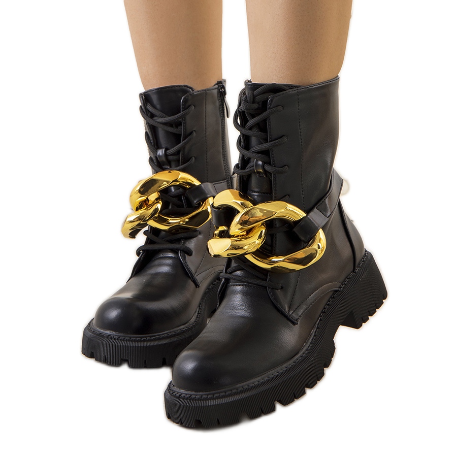 Ove su čizme apsolutno obavezne ove sezone. Kombinacija sirovog, trapera s elegantnim, zlatnim lancem daje moderan i univerzalni učinak. Gornja izrađena od visokokvalitetne ekološke kože osigurava udobnost i izdržljivost, a stabilnost gumenog potplata svaki dan.