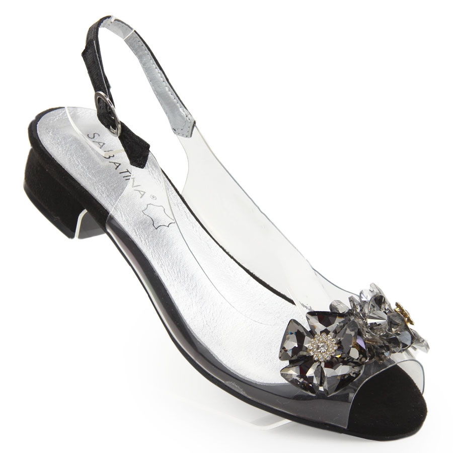 Otkrijte novu dimenziju elegancije s prozirnim ravnim sandalama s crnim kamenjem iz poznate marke Sabatina. Ove izuzetno elegantne sandale kombiniraju stil i udobnost, što ih čini savršen izbor za ljetne dane.