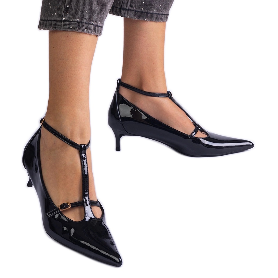 Pojedinosti: Crne pumpe lakirane na niskoj gomili s kopčama crna