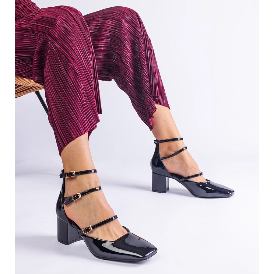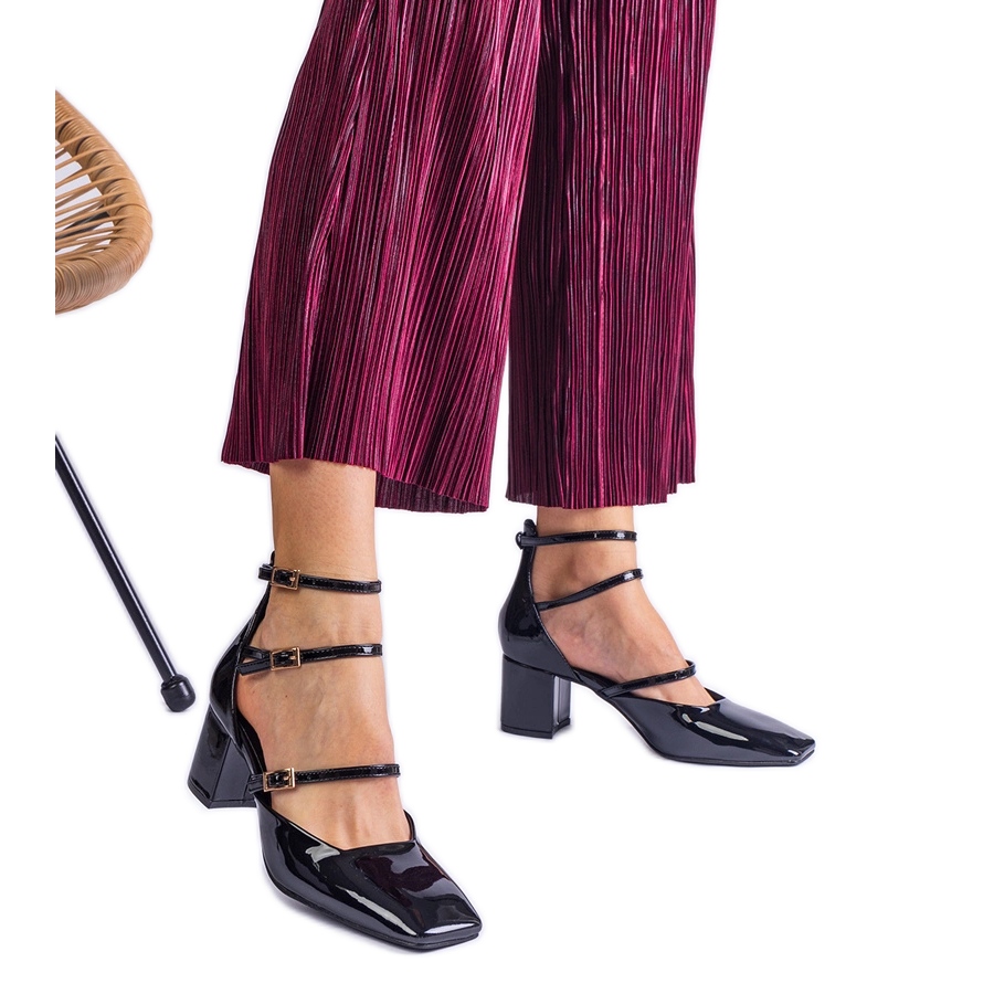 Pojedinosti: Crne pumpe lakirane na posta s kopčama crna