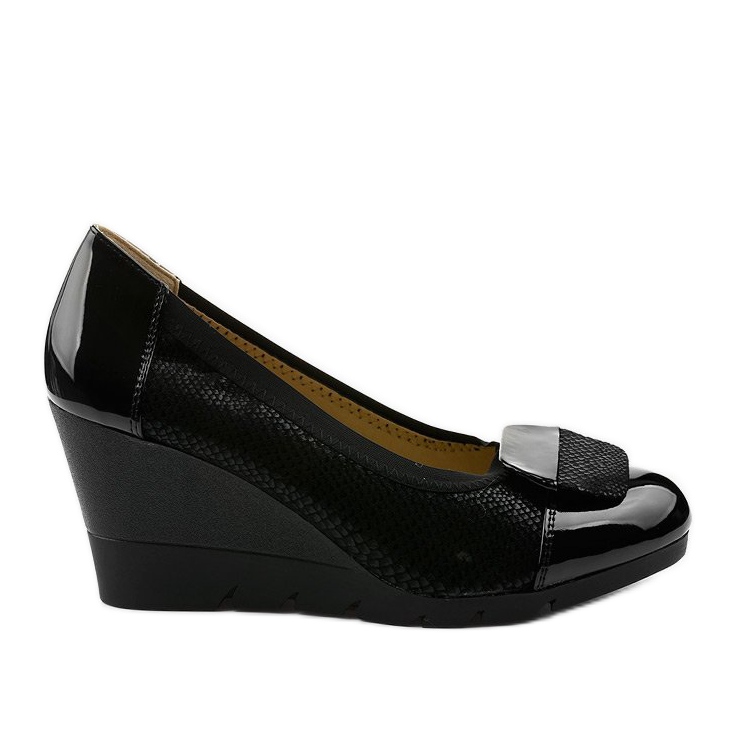 Crne Downreaver cipele na klin savršen su izbor za žene koje cijene eleganciju i klasičan stil. Izrađene od visokokvalitetne crne eko-kože, ove cipele imaju suptilan uzorak zmijske kože koji dodaje jedinstven karakter. Lakirani prsti i pete savršeno nadopunjuju cjelinu, dajući salonkama moderan izgled.